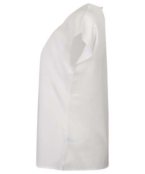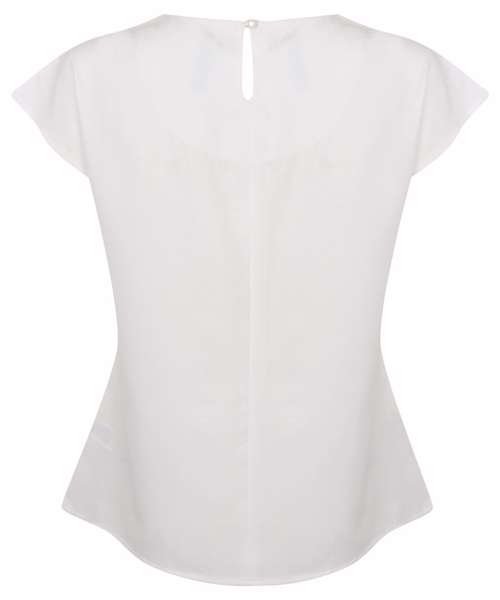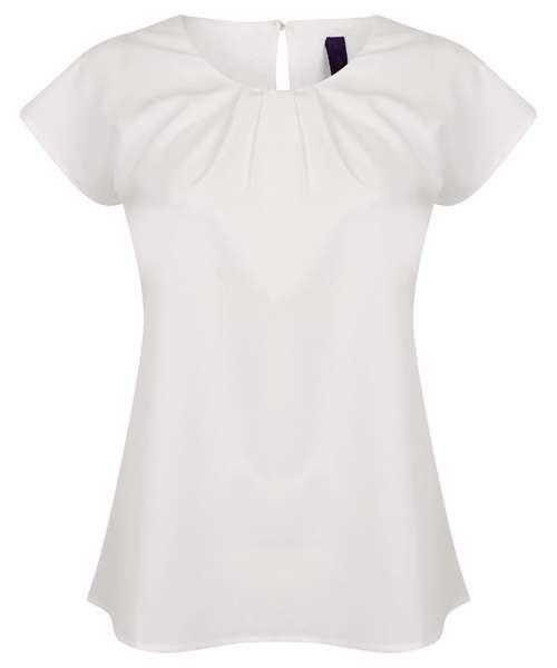 Women's pleat front blouse. Single button back neck opening. Capped sleeves. Straight hem. Fabric contains easycare, wicking, anti-UV, quick-drying properties. Matches HB590 range.